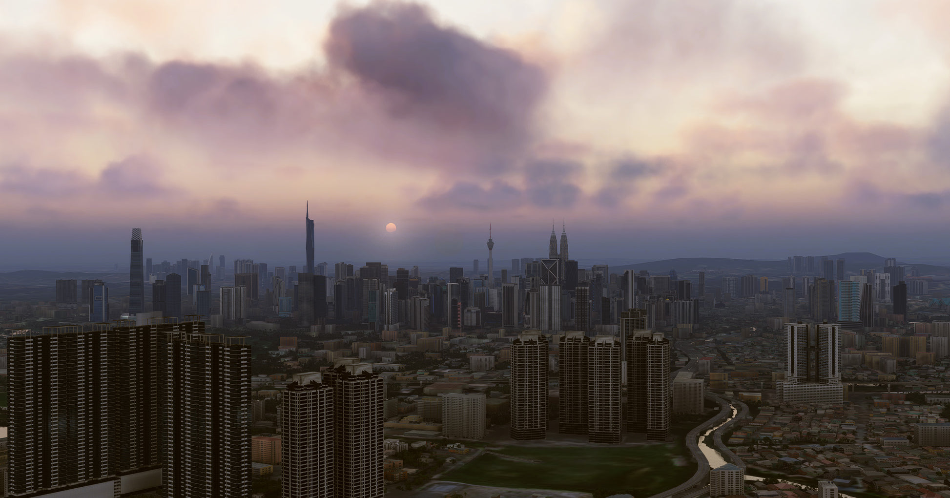 Kuala Lumpur is the capital city of Malaysia. This scenery covers a large portion of the Kuala Lumpur metropolitan area, providing stunning visuals when approaching and landing at its main international airports. The city is filled with dense urban details, iconic landmarks, and modern skyscrapers, greatly enhancing the overall immersion.